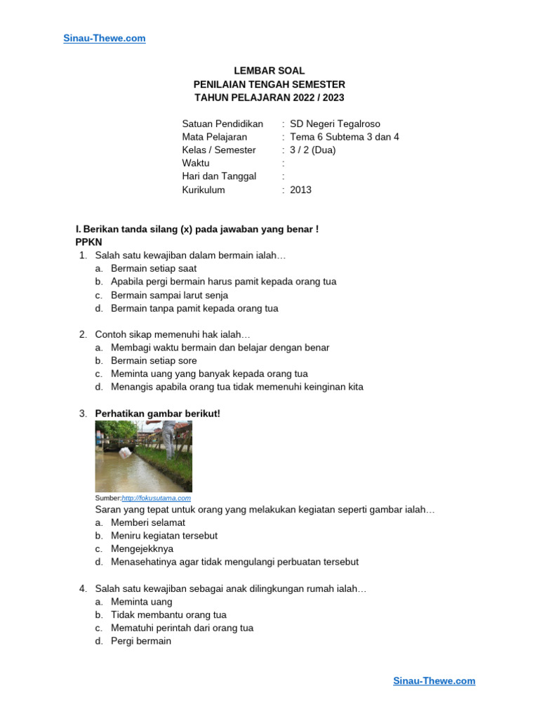 - "Soal PTS Kelas 3 Tema 6 Subtema 3"